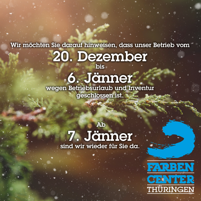 Wir möchten Sie darüber informieren, dass unser Betrieb vom 20.12.2025 bis 06.01.2026 aufgrund unseres jährlichen Betriebsurlaubes geschlossen ist.